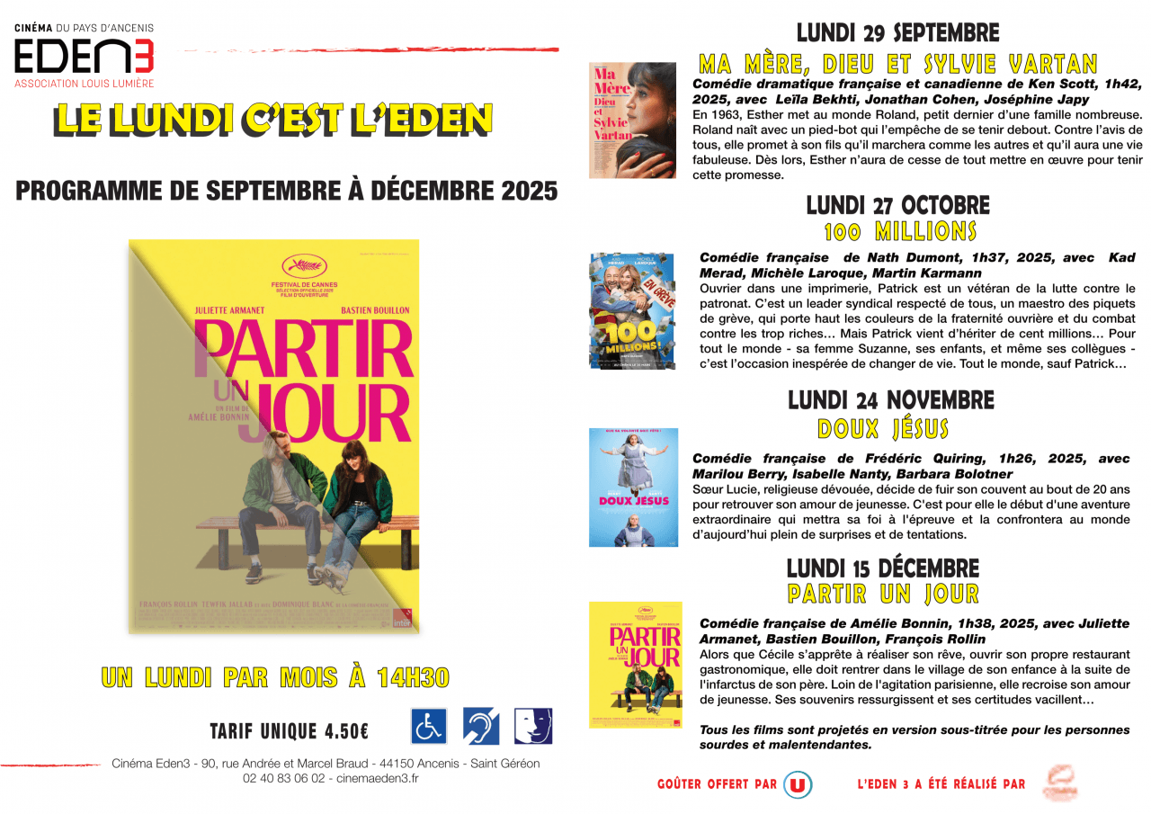 Cinéma Eden 3, 90 rue Andrée et Marcel Braud , 44150 Ancenis-Saint-Géréon | Mentions légales | Contact | Tel : 02.40.83.06.02